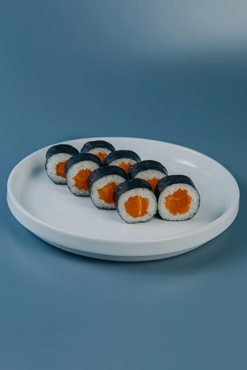 Классический маки-ролл с нежным лососем и рисом в обёртке из нори. Чистый, свежий и идеально сбалансированный вкус — отличный выбор для любителей минимализма.