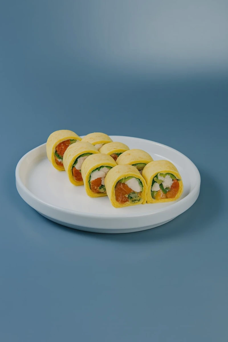 Нежный ролл в сырной тортилье с лососем, сливочным сыром, свежим и маринованным огурцом и зелёным луком. Лёгкий, сочный и приятно освежающий вкус.